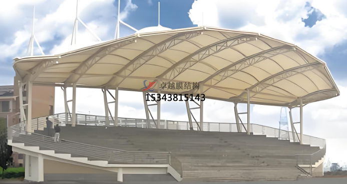 膜結(jié)構(gòu)舞臺廣泛應用于大型演出、體育賽事、展覽展示等場合。在大型演出和體育賽事中,可用于搭建臨時看臺、運動員休息區(qū)等,為觀眾和運動員提供舒適空間。在展覽館、會展中心等場所,可作為展示空間的覆蓋或支撐結(jié)構(gòu),營造出獨特的展示環(huán)境。例如,北京奧運會開幕式上的臨時看臺、國內(nèi)外音樂節(jié)和戲劇節(jié)的舞臺設計,都采用了膜結(jié)構(gòu),以其獨特的視覺效果和靈活多變的布局,為觀眾帶來沉浸式體驗。如音樂會、戲劇表演、舞蹈演出等,其獨特造型和光影效果能提升演出視覺效果,增強觀眾沉浸感。