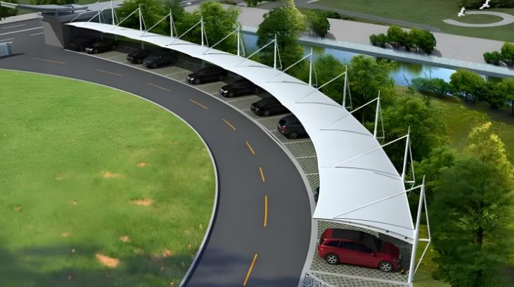 一 膜結(jié)構(gòu)雨棚特點(diǎn)和優(yōu)勢(shì)主要體現(xiàn)在造型美觀,自潔性強(qiáng),輕便耐用,施工便捷,環(huán)保節(jié)能。膜材具有良好的可塑性,可設(shè)計(jì)出各種獨(dú)特的造型,如曲線形、球形、錐形等,為建筑增添藝術(shù)美感。膜材料透光率可達(dá)30%,在陽(yáng)光下不會(huì)變黃或霧化,可實(shí)現(xiàn)自然采光,降低白天照明能耗,同時(shí)提供柔和均勻的光線。膜材料表面防護(hù)涂層如聚氟乙烯等,有著不發(fā)粘的特性,灰塵等污染物可依靠雨水自然沖洗達(dá)到自潔效果,保持雨棚外觀整潔。膜材重量輕,高強(qiáng)度膜材與張拉技術(shù)應(yīng)用減少了雨棚整體重量,使膜結(jié)構(gòu)雨棚抵御風(fēng)雨能力強(qiáng),對(duì)支撐結(jié)構(gòu)要求較低,且高強(qiáng)度膜材配合合理的結(jié)構(gòu)設(shè)計(jì),使其能抵御多種惡劣天氣,使用年限可達(dá)25年以上,膜材強(qiáng)度是普通玻璃的250-300倍,部分采用永久性膜材的車(chē)棚可使用三、四十年。相比傳統(tǒng)建筑雨棚,我們的膜材和鋼結(jié)構(gòu)在工廠預(yù)制,縮短工期,現(xiàn)場(chǎng)安裝速度快,施工周期短,對(duì)周?chē)h(huán)境影響小。同等大小的建筑,采用膜結(jié)構(gòu)成本只相當(dāng)于傳統(tǒng)建筑的二分之一或更少,短期應(yīng)用的大跨度建筑時(shí)更經(jīng)濟(jì)。且膜結(jié)構(gòu)還具有良好的隔熱性能,可減少能源消耗,部分設(shè)計(jì)還可利用太陽(yáng)能發(fā)電。