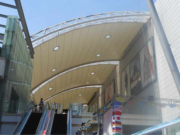 煙臺(tái)市商場膜結(jié)構(gòu)、商業(yè)街頂蓋膜結(jié)構(gòu)、步行街走廊頂棚、罩棚、遮陽棚、雨棚工程案例