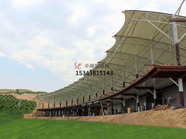 膜結(jié)構(gòu)看臺能擴(kuò)大視覺空間,膜結(jié)構(gòu)看臺適用在面積小或采光好的位置,其結(jié)構(gòu)輕巧,此外,面積小的膜結(jié)構(gòu)看臺能擴(kuò)大視覺空間。高透光及折射性質(zhì),營造自然明亮的感覺。膜結(jié)構(gòu)看臺后方藏設(shè)燈源,晚上能產(chǎn)生光彩晶瑩的感覺,同時(shí)可做間接照明。有宛如玻璃墻的效果。