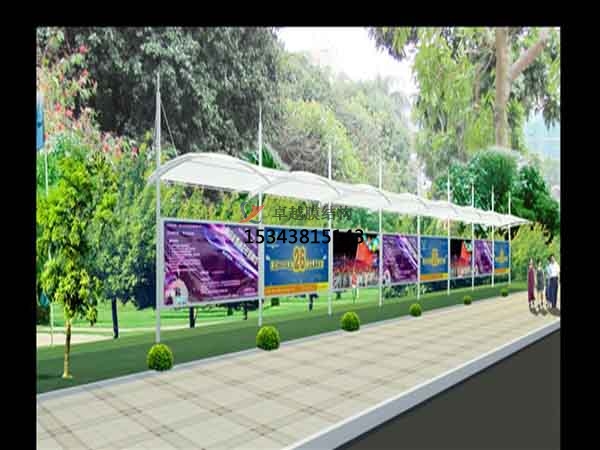 膜結構雨棚是一種全新的建筑結構形式,它集建筑學、結構力學、精細化工與材料科學、計算機技術等為一體,具有很高技術含量。其曲面可以隨著建筑師的設計需要任意變化,結合整體環(huán)境,建造出標志性的形象工程。