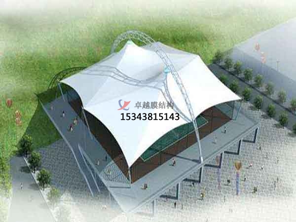 (2 )輕巧而美觀的膜結(jié)構(gòu)用于敞開或半敞開建筑物的遮蔽屋蓋尤為適宜。近年來在足球、田徑等比賽的體育場中,越來越多的看臺挑蓬都采用膜結(jié)構(gòu)。國外很多露天劇院的舞臺、博覽會的展覽館也都以膜材作為頂蓋。在我國廣大地區(qū)的農(nóng)貿(mào)市場也可大力推廣膜結(jié)構(gòu)。
