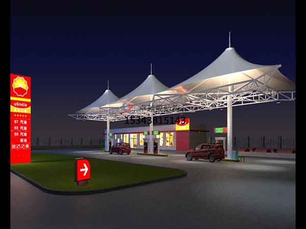 4.更美觀,更藝術。與傳統(tǒng)結構形式加油站多直線的造型相比,膜結構加油站本身的特性(材質自重輕,支撐方式靈活)使得設計師可以在設計上充分發(fā)揮天馬行空的想象力,改造出視覺效果極好的膜結構加油站,吸引人的就是其優(yōu)美的曲面造型,與周圍的建筑相得益彰的同時讓人耳目一新。
