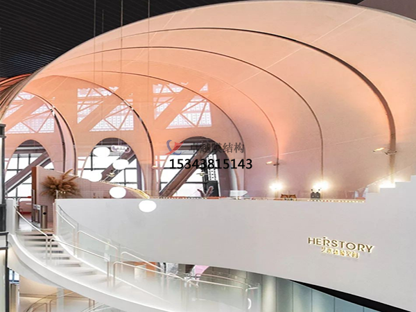 人們發(fā)現(xiàn)算很多的一些商場,包括一些公共區(qū)域,它在進(jìn)行一些休閑空間搭建時,使用的也是張拉膜結(jié)構(gòu)在進(jìn)行修建。主要是因為它的造型非常的漂亮,而且我們在對它進(jìn)行搭建時,也可以感受到它搭建出來之后的整體空間比較大,實用性很大。而且自己在修建過程當(dāng)中,投入的成本比較低,是比較劃算的一種建筑方法和建筑特點.