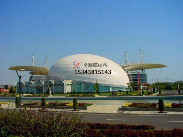 20 世紀(jì) 60 年代隨著現(xiàn)代柔性建筑材料的發(fā)展,建筑師們從帳篷著一更古老的簡(jiǎn)單建筑結(jié)構(gòu)出發(fā),構(gòu)造出了魔幻般的形式--膜結(jié)構(gòu)。它可以構(gòu)成單曲面,多曲面等不同建筑結(jié)構(gòu)形式,滿足了建筑師們對(duì)建筑與美學(xué)高度統(tǒng)一的要求。柔性材料具有透光和防紫外線功能,在一些室外建筑和環(huán)境小品中得到廣泛的應(yīng)用。正是由于這一特征,夜間的燈光設(shè)計(jì)使膜結(jié)構(gòu)具有鮮明的環(huán)境標(biāo)志特征。優(yōu)美造型的膜材,不銹鋼配件和緊固件加上設(shè)計(jì)輕巧合理,表面處理嚴(yán)格的鋼結(jié)構(gòu)支撐,塑造出形式美觀,設(shè)計(jì)合理的膜結(jié)構(gòu),在當(dāng)今世界范圍內(nèi)的建筑環(huán)境設(shè)計(jì)中占有舉足輕重的地位。