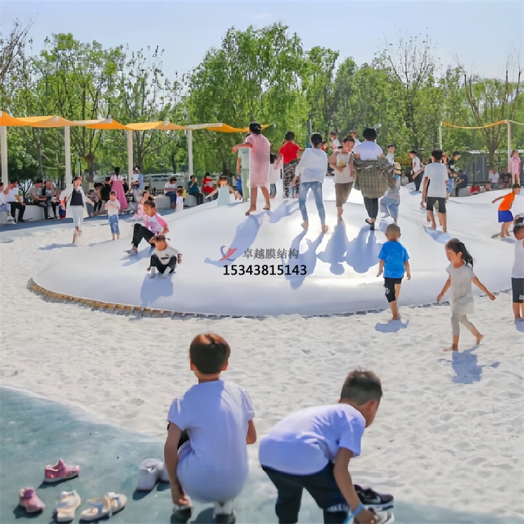 與傳統(tǒng)式蹦蹦床相比,卓越膜結構公司的蹦蹦云可根據(jù)使用需求自由設計彈跳面的弧度與形狀,實現(xiàn)多種造型和異形結構的設計,豐富的外觀造型帶來更強的美觀性和趣味性。