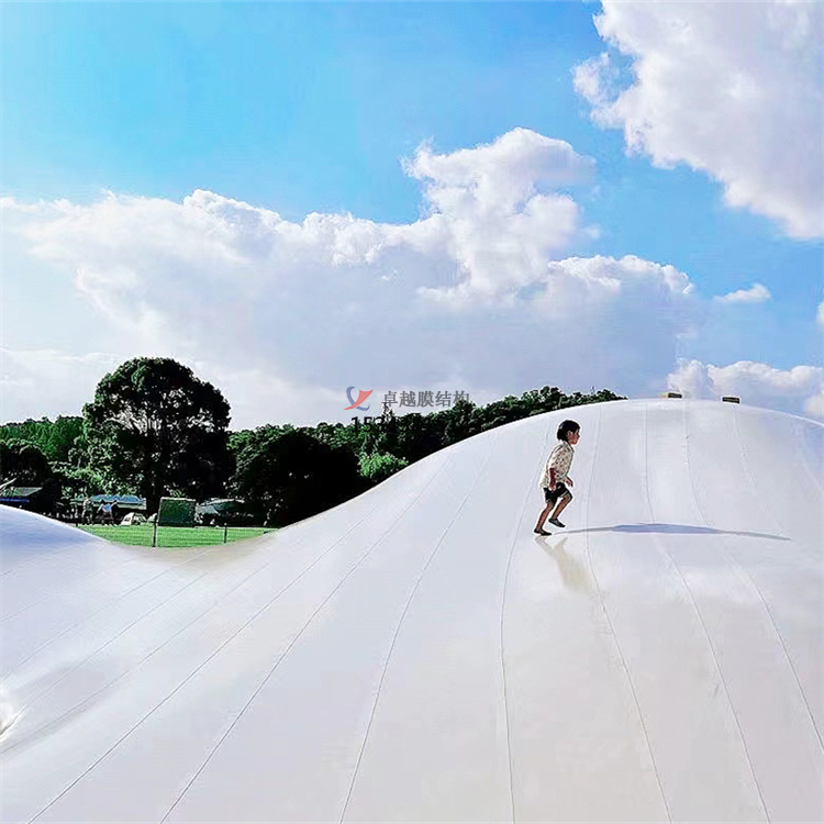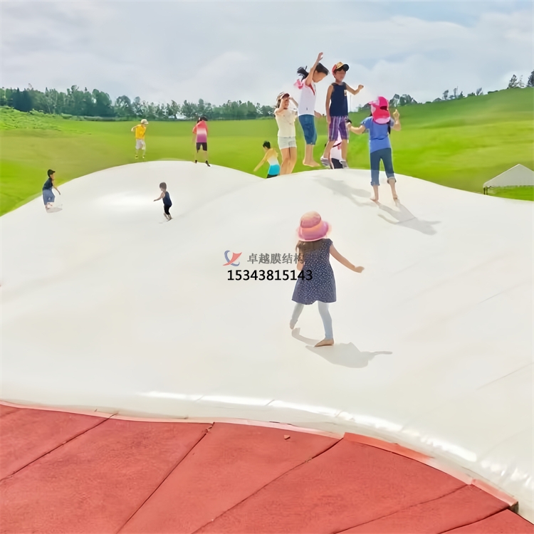 蹦蹦云是新型無動力兒童互動體驗(yàn)設(shè)施,似朵朵白云、形象新穎;整體采用的膜結(jié)構(gòu)拼接而成??杀?、可滑、可爬。適合很多年齡段兒童和成人使用。