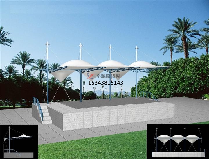 藝術(shù)性:除了一般雨蓬不可比擬的實用、耐用、遮風(fēng)擋雨的功能外,膜結(jié)構(gòu)雨蓬更是一座雕塑,一件藝術(shù)品,給人美的視覺享受。其柔美,其曲線,其剛?cè)岵?,其豐富造型,其潔白無瑕,讓人眼前一亮,回味悠長。