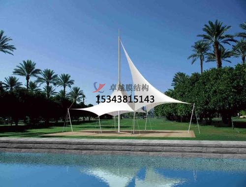 pvc膜材由聚氯乙烯(pvc)涂層和聚酯纖維基層復(fù)合而成,應(yīng)用廣泛,價格適中。一般pvc膜的耐用年限,依使用環(huán)境不同在10~12年。為了改善pvc膜材的耐侯性,近年來已研發(fā)出以氟素系樹脂在pvc涂層材的表面再作處理,以改善其耐侯性及防污性的新膜材。