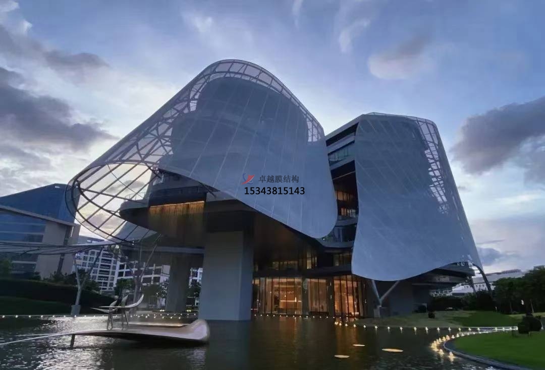 可塑性:膜材柔軟,可塑性強,可以被拉伸成為各種動態(tài)感強的形狀,配合膜結(jié)構(gòu)可以實現(xiàn)各種突破傳統(tǒng)模式的造型,創(chuàng)造大面積無柱覆蓋的空間。