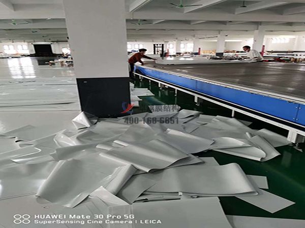 4、加工制作場地應(yīng)平整,加工環(huán)境應(yīng)滿足一定溫、濕度的要求。存放膜材的工作平臺(tái)應(yīng)干燥無污物,整個(gè)加工制作過程應(yīng)保持膜材清潔。