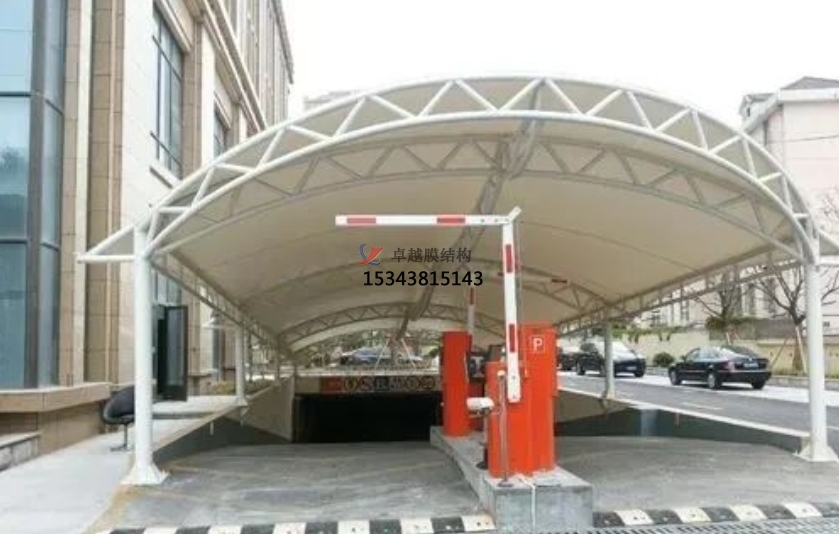 1、建筑膜材——車(chē)庫(kù)入口膜結(jié)構(gòu)雨棚的主力軍