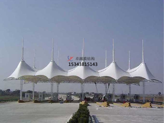 高速公路收費(fèi)站在城市的進(jìn)口處,規(guī)劃具有自己城市鮮明特征和文明神韻的建筑方式乃是每個城市開展的很好的選之作。而張拉膜以自己多變的特性,極具現(xiàn)代感又展示了一個城市的發(fā)展理念和思路。