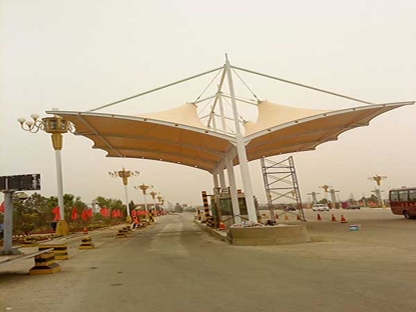 淮北卓越膜結(jié)構(gòu)工程公司是專業(yè)從事收費站雨棚,高速高速公路膜結(jié)構(gòu)、高速服務區(qū)充電站配套雨棚,高速公路服務區(qū)景觀遮陽棚,高速公路加油站罩棚的專業(yè)廠家,擁有一批國內(nèi)更早從事膜結(jié)構(gòu)行業(yè)的工程技術人才,并與淮北地區(qū)各著名設計院、大學都有緊密合作,使用國際更先進的膜結(jié)構(gòu)建筑設計軟件、荷載分析軟件、找型裁剪軟件、結(jié)構(gòu)計算軟件,充分保證了淮北卓越公司在中國膜結(jié)構(gòu)領域技術領先性。下面給各位介紹一下我公司在淮北及周邊縣市完工的一批高速公路收費站膜結(jié)構(gòu)工程案例。