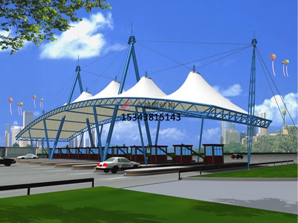 膜結(jié)構(gòu)考慮的荷載一般是風載和雪載。在荷載作用下膜材料的變形較大,且隨著形狀的改變,荷載分布也在改變,因此要精確計算結(jié)構(gòu)的變形和應(yīng)力要用幾何非線性的方法進行。荷載分析的另一個目的是一確定索、膜中初始預(yù)張力。在外荷載作用下膜中一個方向應(yīng)力增加而另一個方向應(yīng)力減少,這就要求施加初始張應(yīng)力的程度要滿足在更不利荷載作用下應(yīng)力不致減少到零,即不出現(xiàn)皺褶。因為膜材料比較輕柔,自振頻率很低,在風荷載作用下極易產(chǎn)生風振,導(dǎo)致膜材料破壞,如果初始預(yù)應(yīng)力施加過高,膜材涂變加大,易老化且強度儲備少,對受力構(gòu)件強度要求也高,增加施工安裝難度。因此初始預(yù)應(yīng)力的確定要通過荷載計算來確定。