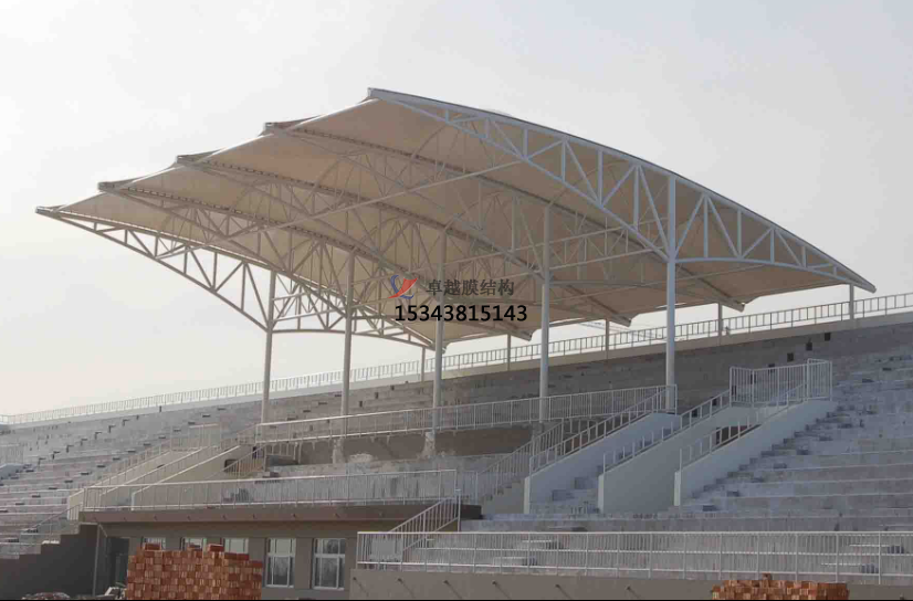 張拉膜看臺主要用于各類地方體育場主席臺雨棚,各類學(xué)校體育場看臺雨棚遮蓋,我公司是國內(nèi)較早從事大懸挑張拉膜結(jié)構(gòu)看臺設(shè)計施工的專業(yè)廠家,下面介紹一下我們在虞城縣周邊縣市完工的一些張拉膜看臺設(shè)計施工案例,我公司先后在虞城縣周邊承接了虞城縣春來實驗學(xué)校膜結(jié)構(gòu)看臺雨篷/主席臺/舞臺安裝雨棚、虞城縣高中張拉膜張拉膜看臺罩棚、虞城職業(yè)高中等設(shè)計施工項目,簡介如下: