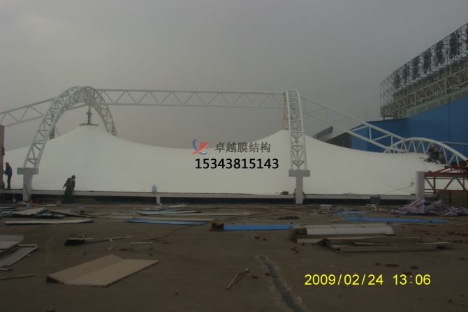 更后:商業(yè)街膜結(jié)構(gòu)穹頂?shù)闹饕獦?gòu)成有膜布,鋼結(jié)構(gòu)(Q235、無縫焊管、高頻焊管、H型鋼等),更主要的特性重量輕、強度高、防火難燃、自潔性好,不受紫外線影響、抗疲勞、耐扭曲、耐老化、使用壽命長。具有高透光率,熱吸收量很少。正是因為這種跨時代的膜材料的發(fā)明,使膜結(jié)構(gòu)建筑成為現(xiàn)代化的永久性建筑。