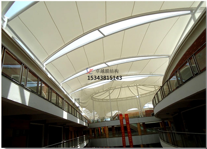 商業(yè)街道膜結(jié)構(gòu)的透明度可以為商業(yè)街道提供所需的照明,這對(duì)商業(yè)街道節(jié)能非常重要。通過綜合利用自然采光和人工照明,電影的透明度可以為商業(yè)街提供更大的審美創(chuàng)造空間。在夜晚,光傳輸將膜結(jié)構(gòu)轉(zhuǎn)變?yōu)楣獾袼堋Mㄟ^膜和透光絕緣材料的適當(dāng)組合,可以使包含絕緣層的多層膜半透明。即使光譜傳輸僅為百分之幾,薄膜屋頂仍然是人眼的光澤和半透明,具有輕微的屋頂外觀。