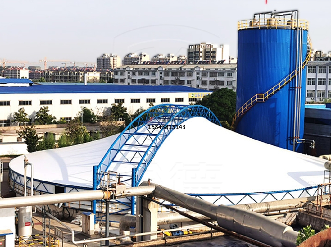 污水池反吊膜技術(shù)是一種利用膜材反吊的原理,將鋼結(jié)構(gòu)在外將膜材懸吊,利用膜材的氣密性特點,將廢氣密封在一個密閉的空間,進而將凈化后的廢氣排出池外,達到排放標(biāo)準(zhǔn)的技術(shù)。它采用以鋼構(gòu)為支撐,膜材反吊覆蓋的膜結(jié)構(gòu)形式,即抗腐蝕能力很強的新型環(huán)保膜材將廢氣量住,而鋼結(jié)構(gòu)則在外面將膜懸吊起來。