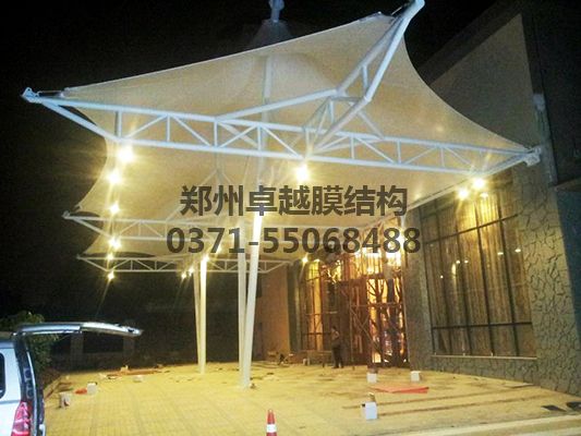 卓越案例——廣州天河區(qū)臨江大道海米堡鮮酒店大門膜結構雨棚
