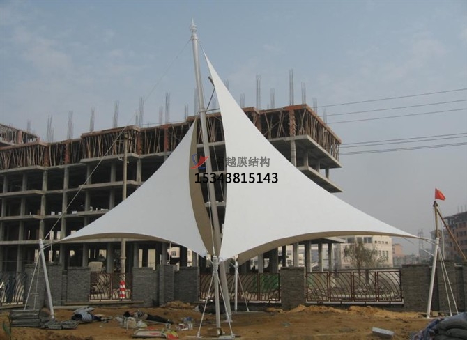 這是我司太原及周邊地區(qū)完工的膜結(jié)構(gòu)景觀工程案例,膜結(jié)構(gòu)景觀給人們對白色或米白色膜材會有很好的色彩感知,因?yàn)檫@兩種色彩表現(xiàn)出對可見光具有線性光譜透射的特點(diǎn)。透射程度隨透射光波長的增加而增加,這使得透射光比人射光還略溫暖。透射光譜與纖維及其特點(diǎn)、涂層的厚度以及附加面層有關(guān),相對于傳統(tǒng)涂理PVC的聚醋纖維膜材,涂覆PTFE的玻瑞纖維膜材的透射光譜更加均勻具有外觀新穎,經(jīng)濟(jì)適用,適用壽命長,節(jié)能透光等優(yōu)點(diǎn)。深受廣大用戶的好評,我司所有工程全部通過專業(yè)膜結(jié)構(gòu)軟件計(jì)算通過,結(jié)構(gòu)安全,質(zhì)量可靠。