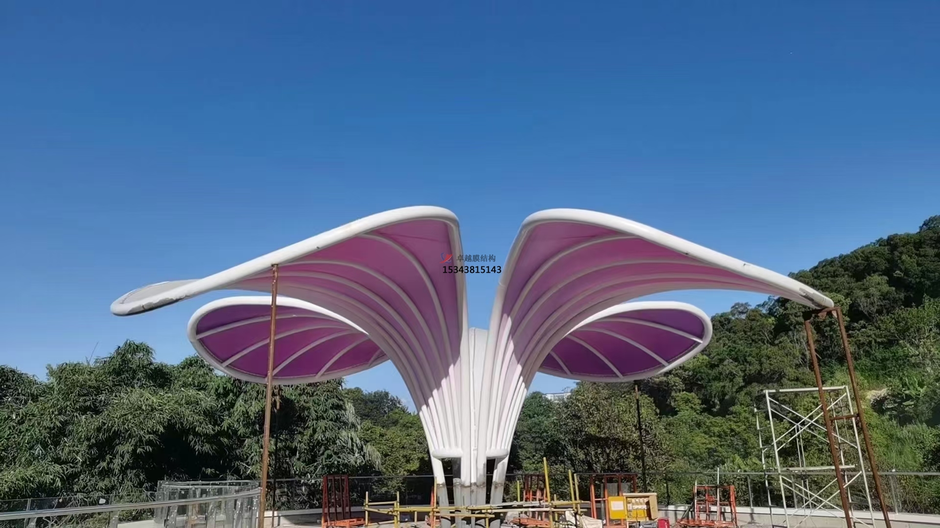 色彩是景觀膜結(jié)構(gòu)設(shè)計的關(guān)鍵要素。膜材本身提供了豐富的色彩選項,且能依據(jù)不同景觀環(huán)境與設(shè)計主題靈活調(diào)配。在自然景觀主導(dǎo)的公園或郊外景區(qū),常選用米白、淺藍等柔和色調(diào),使之與自然景色相融,營造寧靜和諧的氛圍。