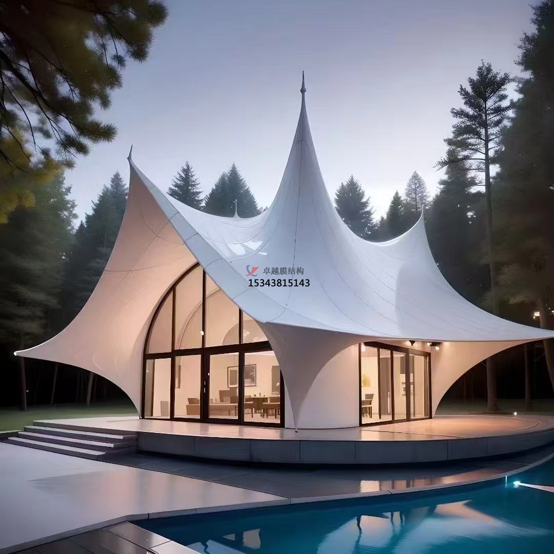 山區(qū)景觀中,膜結(jié)構(gòu)與山體輪廓契合無間。登山步道休息亭采用與山勢呼應(yīng)的造型,如順山勢起伏的波浪形或類山峰輪廓的三角形,仿若自然生長于山體之中。膜材顏色選取與巖石、植被相近色調(diào),強化與自然景觀協(xié)調(diào)性。海濱景觀里,膜結(jié)構(gòu)與大海沙灘相互映襯。海邊沙灘浴場遮陽棚以通透膜材構(gòu)建,人們遮陽同時飽覽海景,輕盈造型與海浪動態(tài)呼應(yīng),海風(fēng)吹拂下?lián)u曳生韻,成為海濱景觀重要組成部分。