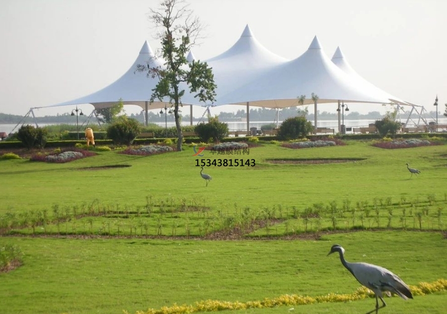 膜結(jié)構(gòu)通透特質(zhì)使區(qū)域既相對獨立又彼此關(guān)聯(lián),游客游覽時感受空間轉(zhuǎn)換變化,增添景觀趣味性與層次感。同時,膜結(jié)構(gòu)作為景觀視覺焦點,在空曠草坪或廣場上,獨特造型的景觀亭或雕塑吸引目光,使景觀布局更趨均衡且富有吸引力。