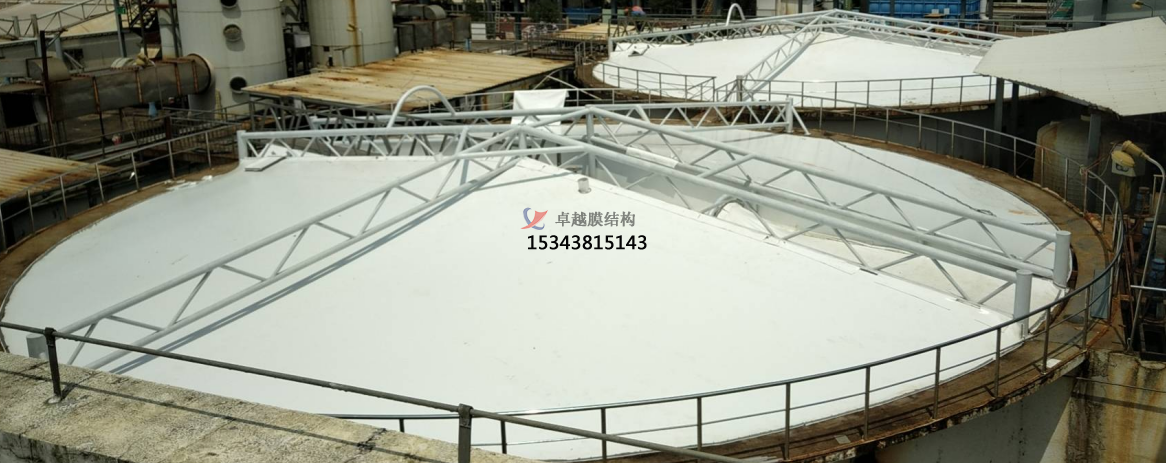 反吊膜用在污水廢氣治理上效果明顯.膜材占了很大的優(yōu)勢。目前市面上許多的反吊膜工程都是采用PVDF膜材.當(dāng)然能用在膜結(jié)構(gòu)上的膜材不止這一種,還有ETFE膜材、PTFE膜材等,但相對(duì)來說PVDF膜材是較為適合做反吊膜的,原因在于: