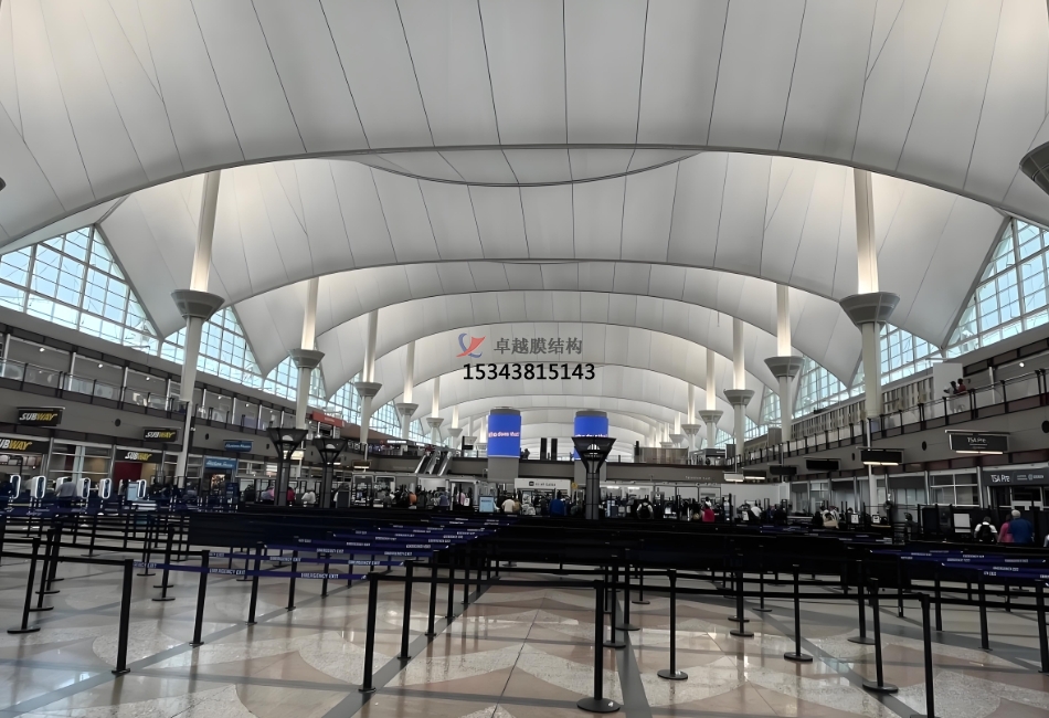 國外眾多大型機場也早已將膜結(jié)構(gòu)廣泛運用于修建規(guī)劃中。比方美國丹佛新國際機場候機大廳,其采用的索膜結(jié)構(gòu)系統(tǒng)令人矚目。索膜結(jié)構(gòu)系統(tǒng)起源于遠古時代人類居住的帳子,在 20 世紀(jì) 70 時代以后,跟著高強、防水、透光且外表光潔、易清洗、抗老化的修建膜資料的出現(xiàn),以及工程核算科學(xué)的飛速發(fā)展,這一結(jié)構(gòu)系統(tǒng)得以復(fù)興,并大量運用于大空間的公共修建,機場便是其間重要的運用領(lǐng)域。丹佛新國際機場候機大廳的索膜結(jié)構(gòu),造型自在、輕巧、柔美,充滿力量感,為旅客營建出共同的空間體會。其不只在外觀上極具視覺沖擊力,在功用上也體現(xiàn)杰出。膜結(jié)構(gòu)能有用克服傳統(tǒng)結(jié)構(gòu)在大跨度修建上的困難,創(chuàng)造出巨大的無遮擋可視空間,滿意了機場關(guān)于開闊空間的需求,使旅客在候機過程中視野愈加開闊,削減壓抑感。