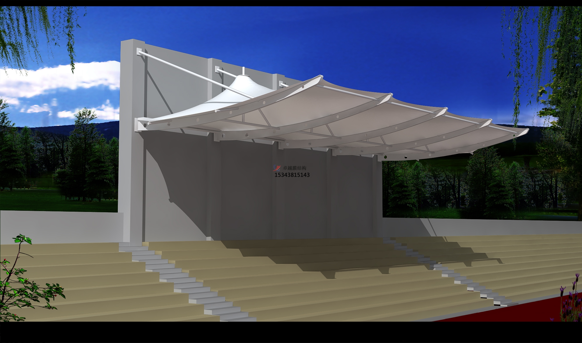 因而膜結構在行業(yè)內有“不破玻璃”的稱號。一起成本只要其它結構車棚的一半或者更少。 藝術性:膜結構車棚更值得一提的是它能夠依據支撐構件的方位和高低排列組成不同的形狀,這在金屬車棚上是無法幻想的。如在車棚頂部經過拉伸索,使膜結構布邊沿向上翻起。這要是在彩鋼上只能經過對彩鋼板進行預熱加工才行,需要耗費極大的代價。