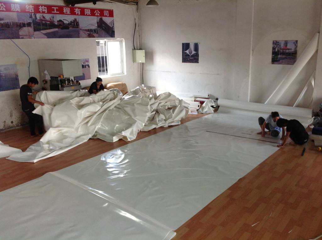 膜結(jié)構(gòu)加工制作階段的工作內(nèi)容,包括裁剪設(shè)計(jì)的原則、裁剪方法、膜材的連接、裁剪下料圖及加工圖、膜面加工制作的工序與質(zhì)量要求等。