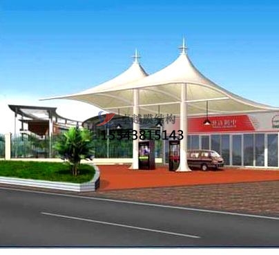 目前許多加油站和收費(fèi)站的頂棚都是選擇膜結(jié)構(gòu)來建造的,因其擁有工期短,壽命長(zhǎng),造型美觀,自潔性強(qiáng),防火等優(yōu)點(diǎn)。