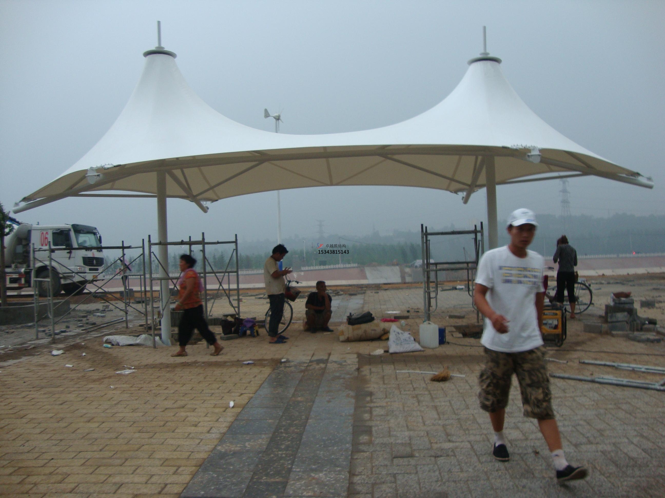 景觀園林膜結(jié)構(gòu)應(yīng)用場景:應(yīng)用場景有城市公共空間、生態(tài)與藝術(shù)重合、休閑與商業(yè)區(qū)域。城市公共空間,德國柏林花形展館采用充氣膜技術(shù),通過白色PVC膜模擬巨型花朵形態(tài),兼具遮陽、通風(fēng)及照明功能,模塊化設(shè)計可獨立或組合使用,成為會展公園的標(biāo)志性景觀,上海世博軸陽光谷以喇叭花造型膜結(jié)構(gòu)為核心,結(jié)合鋼架與水波張拉膜,形成兼具剛?cè)崽匦缘某L景觀帶。生態(tài)與藝術(shù)融合,法國盧瓦爾河畔肖蒙國際花園節(jié)的紅色花形景觀膜,通過彩膜與陶罐系統(tǒng)結(jié)合,既節(jié)水又象征生態(tài)循環(huán),具有教育與警示意義。荷蘭Leidsche Rijn公交站采用牽?;ㄔ煨湍そY(jié)構(gòu),排列整齊的形態(tài)與法拉利TX30膜材結(jié)合,成為兼具功能性與地標(biāo)性的城市設(shè)施。休閑與商業(yè)區(qū)域,景觀棚膜結(jié)構(gòu)廣泛應(yīng)用于步行街、公園綠地和景區(qū),提供遮陽避雨空間的同時,通過夜間燈光營造夢幻效果,增強商業(yè)吸引力。