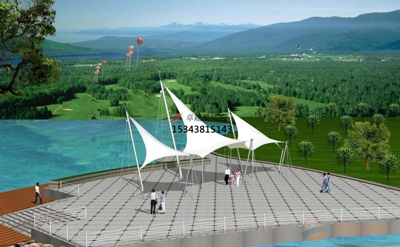 張拉膜景觀是一種建筑與結(jié)構(gòu)完美結(jié)合的結(jié)構(gòu)體系;它是用高強(qiáng)度柔性薄膜材料與支撐體系相結(jié)合形成具有一定剛度的穩(wěn)定曲面,能承受一定外荷載的空間結(jié)構(gòu)形式;這種結(jié)構(gòu)形式特別適用于大型體育場館、人口廊道、小品、公眾休閑娛樂廣場、展覽會場、購物中心等領(lǐng)域。