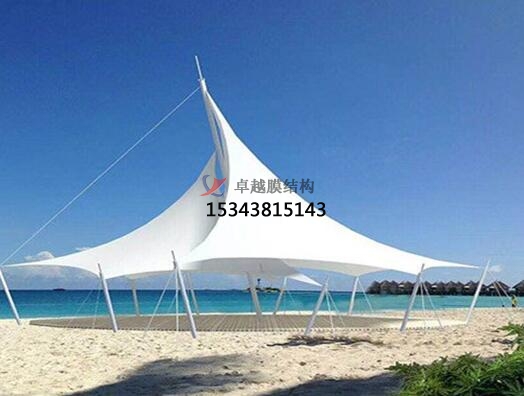 景觀膜結(jié)構(gòu)遮陽棚中所使用的膜材料每平方壹公斤左右,由于自重輕,加上鋼索、鋼結(jié)構(gòu)高強(qiáng)度材料的采用,與受力體系簡潔合理——力大部分以軸力傳遞,故使景觀膜結(jié)構(gòu)遮陽棚適合跨越大空間而形成開闊的無柱大跨度結(jié)構(gòu)體系。