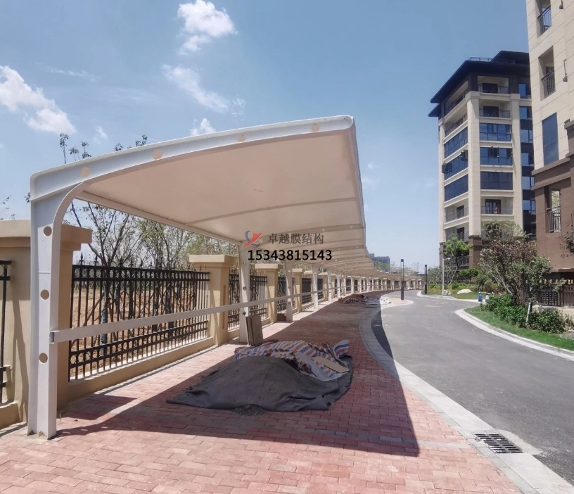 膜結(jié)構(gòu)車棚在與以往的舊式車棚的比較中,整體能承受的載荷大很多,膜結(jié)構(gòu)受力點小,單位尺寸上能承受的壓強高,膜結(jié)構(gòu)車棚都穩(wěn)固如山,并且膜結(jié)構(gòu)車棚的透光性達(dá)到13%,不會因為長時間的直曬變黃,也不會物理特性發(fā)生變化,比如變脆,軟化等現(xiàn)象。