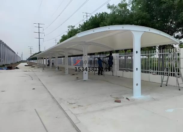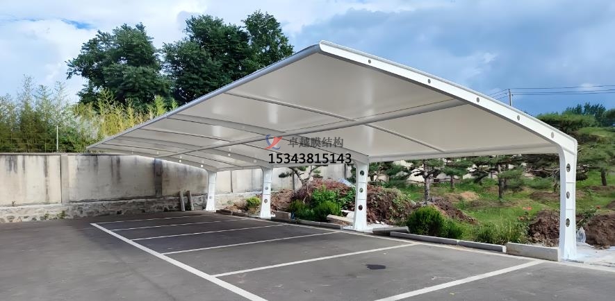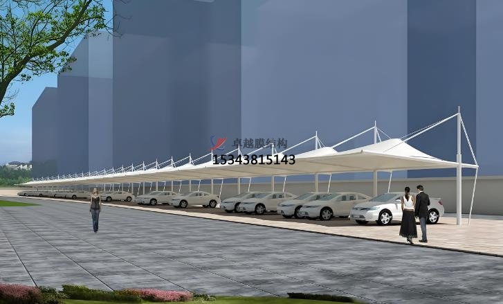 有獨特的藝術(shù)美感,為城市增添亮麗風景線。高強度膜材配合張拉技術(shù),使車棚抵御風雨能力強,膜材料還具有高強度、耐候性、防火性和自潔性,有的采用永久性膜材,使用壽命可達25年
